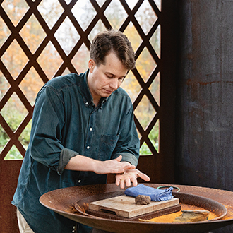 ”Jag får inte inspiration till nya recept i klassiska kök, jag jobbar betydligt mer utomhus, här eller hemma”, säger Magnus Westling.