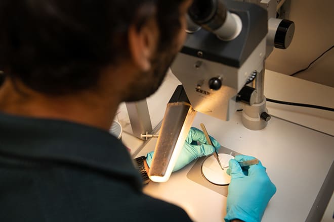 Att dissekera myggor är pilligt och det gäller att vara snabb, annars dör myggan innan man har hunnit göra det man ska, förklarar Rahul Krishnan.